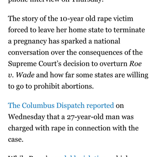 Fox News and other right-wing news outlets tried to convince viewers she wasn’t real (until a man was actually charged for the rape). Catherine Glenn Foster tried to testify to Congress that it “wouldn’t be an abortion,” trying to twist words and misinform the public. And to top it all off, Indiana’s Attorney General is going after Dr. Caitlin Bernard, the doctor who performed the likely life-saving abortion, with potential criminal charges for allegedly not turning in forms on time (https://www.politico.com/news/2022/07/14/indiana-abortion-rape-ohio-00045899).